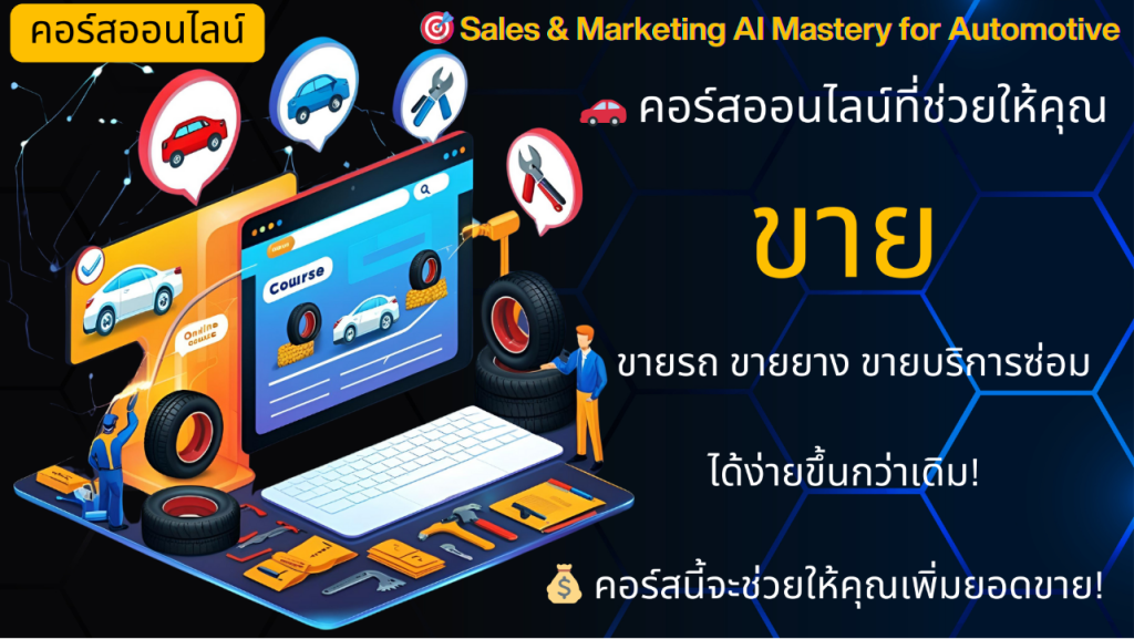 🚗 คอร์สออนไลน์ที่ช่วยให้คุณ ขายรถ ขายยาง ขายบริการซ่อม ได้ง่ายขึ้นกว่าเดิม! “Sales & Marketing AI Mastery for Automotive”🔥
